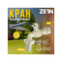 Кран водоразборный со штуцером ZEIN, 1/2", ручка, корпус цин