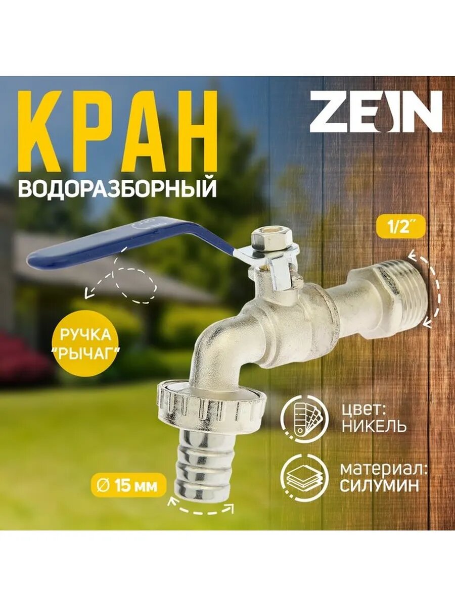 Кран водоразборный со штуцером ZEIN, 1/2″, ручка, корпус цин: сравнение цен, характеристики, фото, актуальное наличие и цены.
