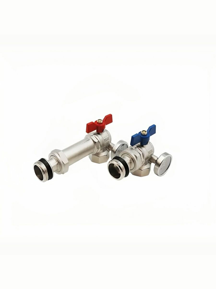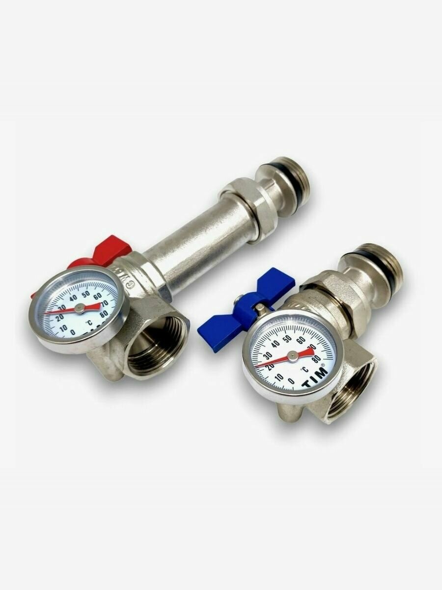 Купить Краны шаровые угловые 1″ с полусгонами и термометрами для коллекторных групп (пара) M329-4 TIM с доставкой по всей России.