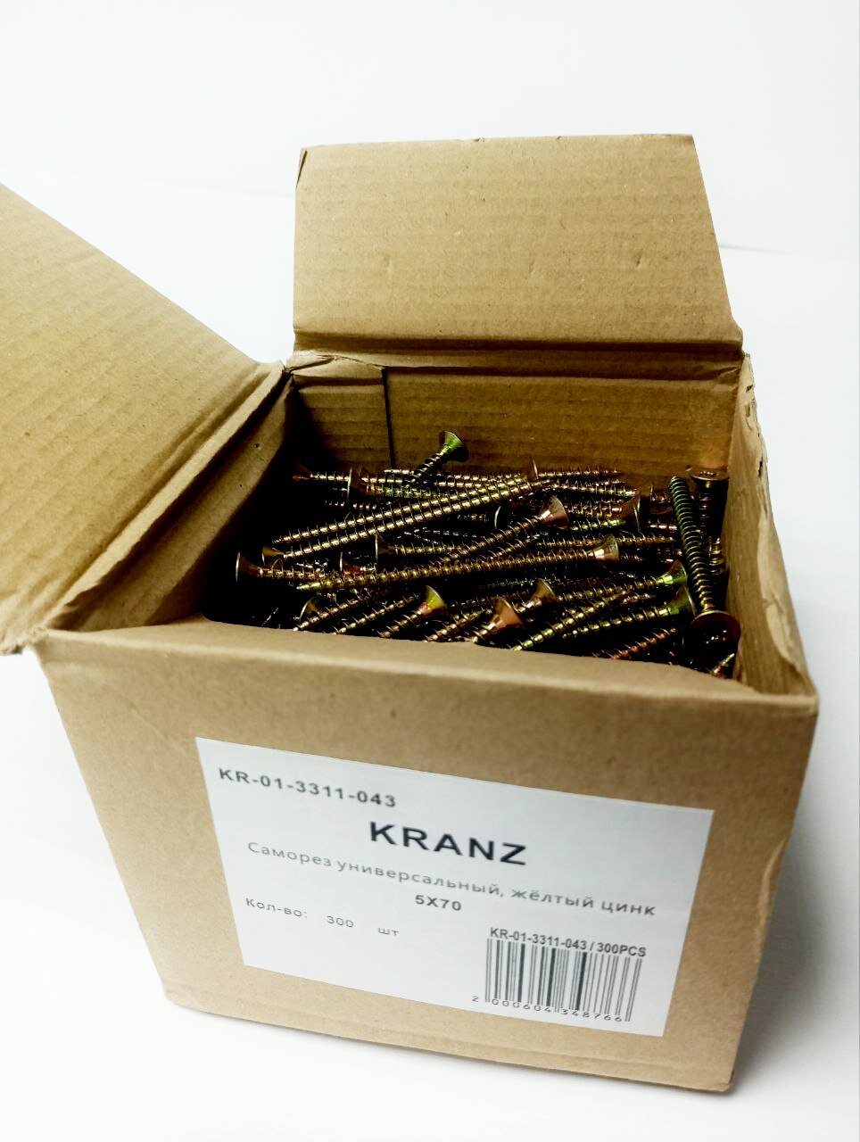Kranz KR-01-3311-043 Саморез универсальный 5х70 желтый цинк, упаковка 300 шт: сравнение цен, характеристики, фото, актуальное наличие и цены.