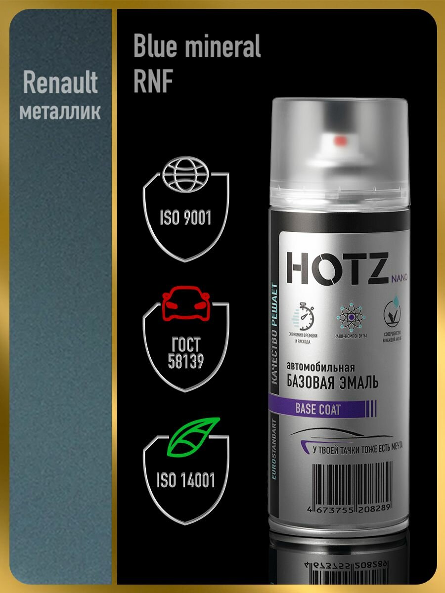Краска аэрозольная 1K «Renault Blue Mineral RNF» металлик 520 мл, базовая автомобильная ремонтная эмаль, HOTZ