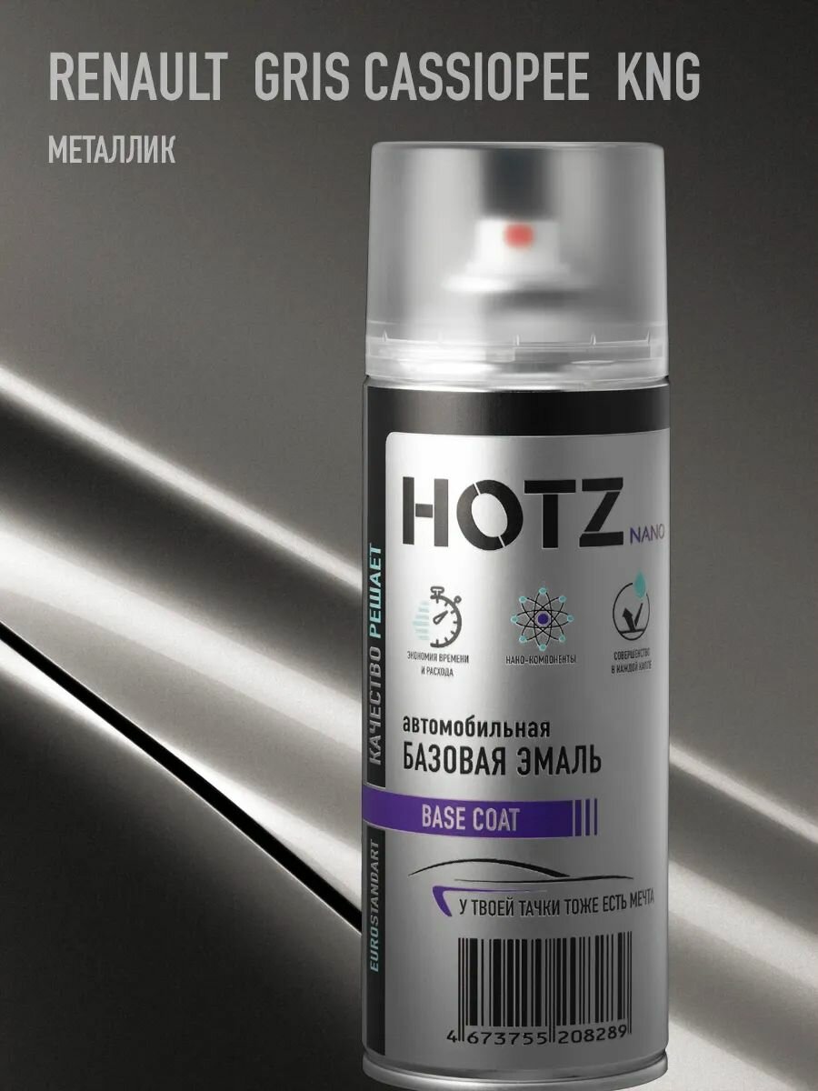 Краска аэрозольная 1K «Renault Gris Cassiopee KNG» 520 мл, базовая автомобильная ремонтная эмаль, HOTZ: сравнение цен, характеристики, фото, актуальное наличие и цены.