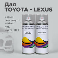 Краска-спрей, аэрозоль для авто по коду 77, 9012, 070 Toyota (левый руль) Белый перламутровый, White. Аэрозольные баллоны 2 шт. (краска+ перламутр)