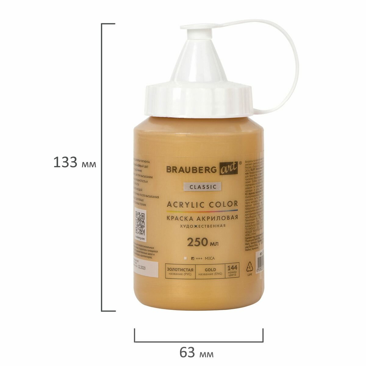Купить Краска акриловая художественная Brauberg Art Classic, флакон 250мл, золотистая (191713) с доставкой по всей России.