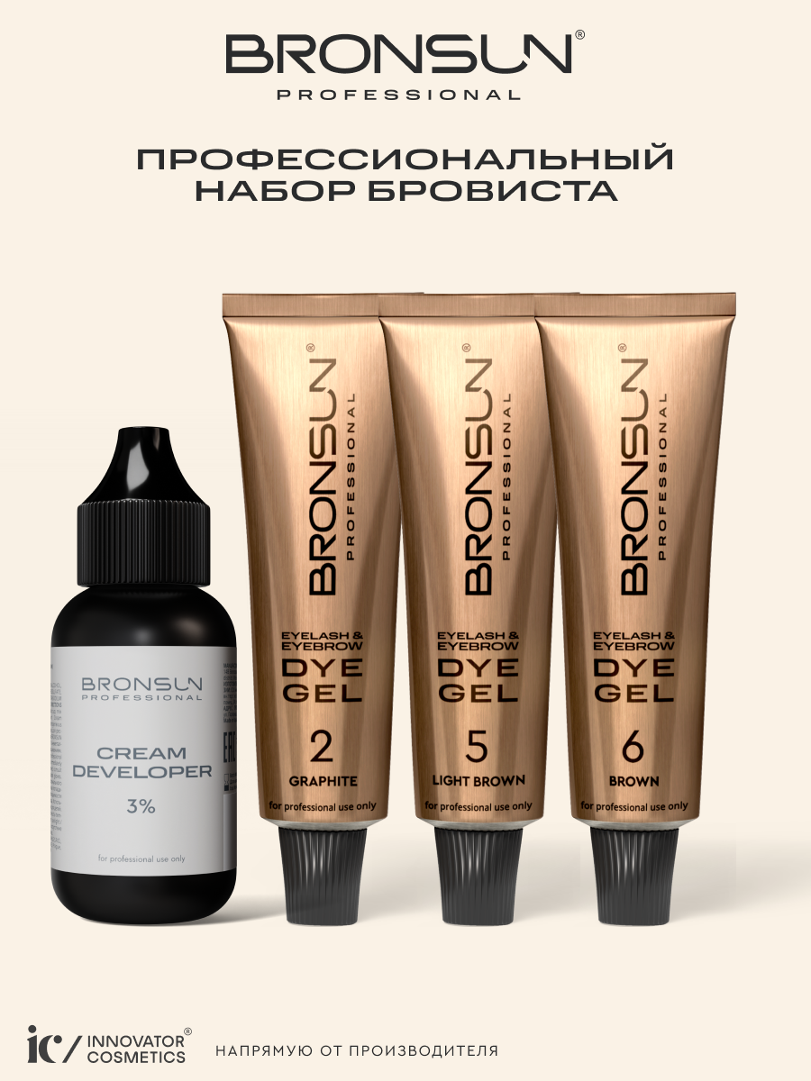 Самая стойкая краска для бровей и ресниц BRONSUN в формате профессионального набора бровиста! 3 оттенка гель-краски с эффектом татуажа + окислитель 3% в подарок!