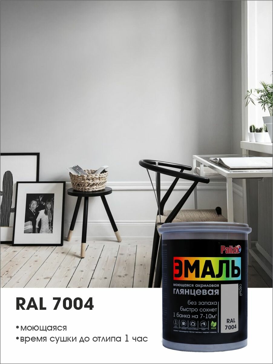Краска эмаль акриловая глянцевая «Palizh» (1 кг), серый RAL 7004: сравнение цен, характеристики, фото, актуальное наличие и цены.
