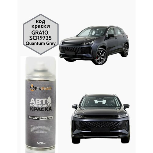 Аэрозольная краска FixPaint Spray для автомобилей EXEED LX, код краски GRA10, SCR9725, RBGX, GX, название цвета (оттенок) (оттенок) Quantum Grey, Титан (тёмно-серый), предназначена для ремонтной покраски металлических и пластиковых кузовных элементов автомобиля по технологии идентичной профессиональной и позволяет качественно выполнить восстановление лакокрасочного покрытия.