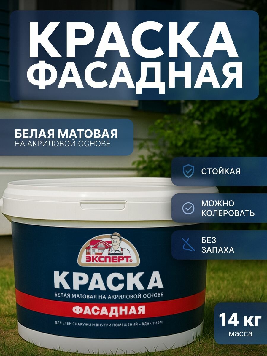 Купить Эксперт Краска фасадная 14кг с доставкой по всей России. Эксперт Краска фасадная 14кг: сравнение цен, характеристики, фото, актуальное наличие и цены.