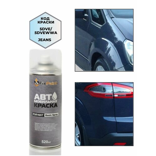Аэрозольная краска FixPaint Spray для автомобилей FORD , код краски 5DVEWWA, название цвета JEANS, JEANS BLUE, предназначена для ремонтной покраски металлических и пластиковых кузовных элементов автомобиля по технологии идентичной профессиональной и позволяет качественно выполнить восстановление лакокрасочного покрытия.