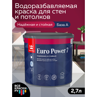 Купить TIKKURILA EURO POWER 7 краска моющаяся для стен и потолка, матовая, база A (2,7л) с доставкой по всей России.