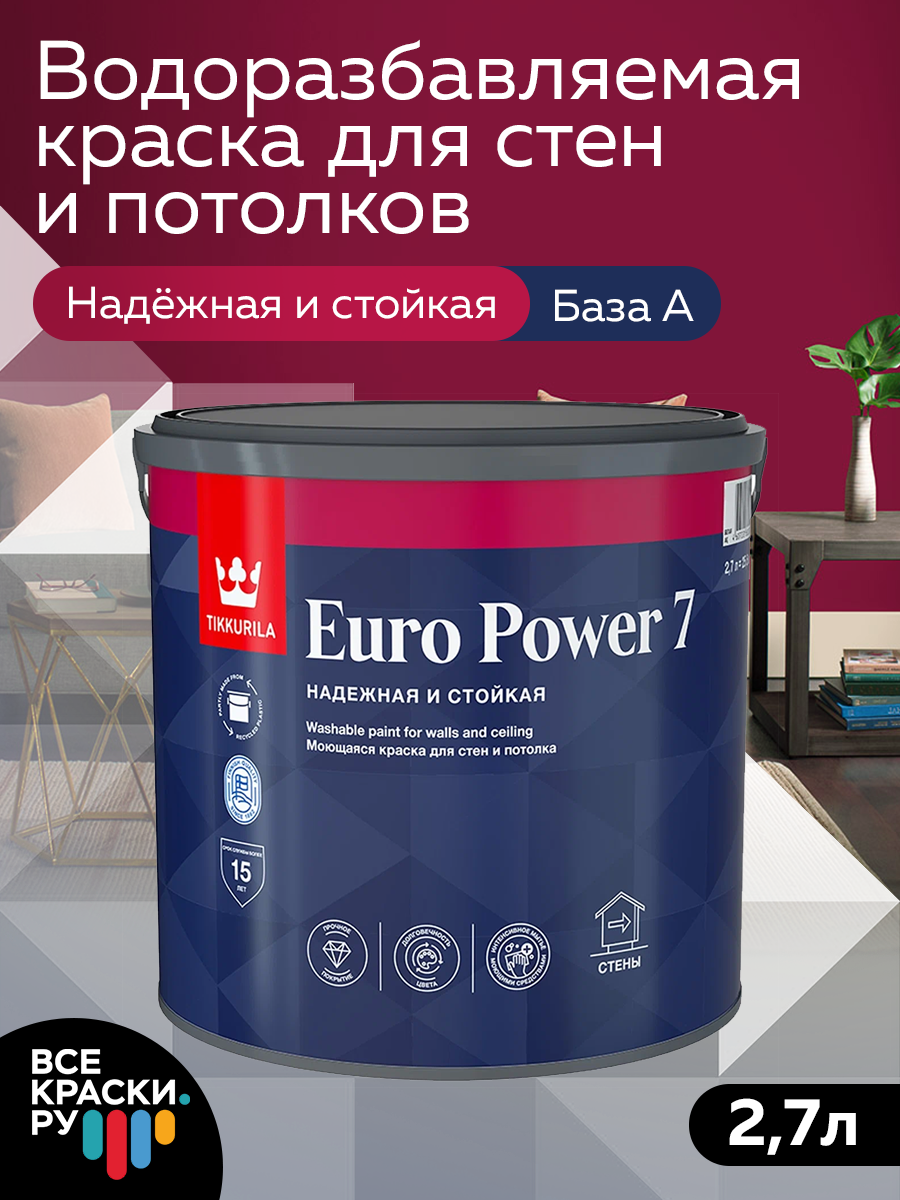 TIKKURILA EURO POWER 7 краска моющаяся для стен и потолка, матовая, база A (2,7л): сравнение цен, характеристики, фото, актуальное наличие и цены.