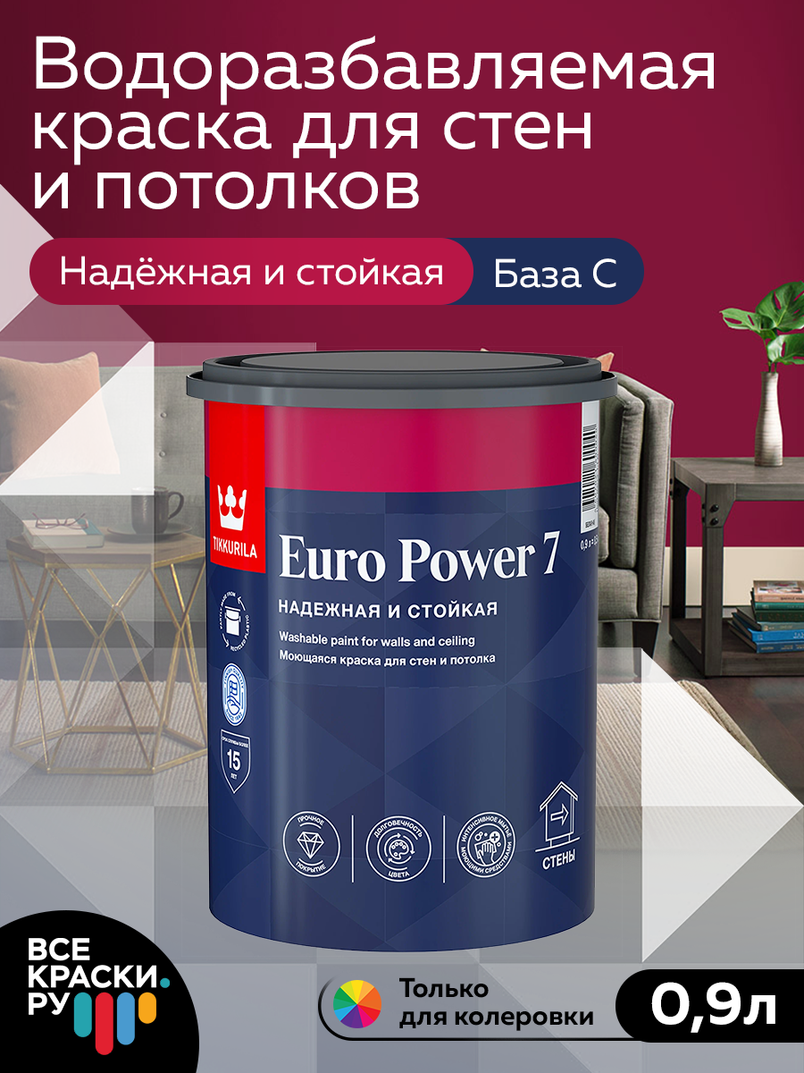 Купить Краска интерьерная Tikkurila/Tikkivala Euro Power 7 матовая база C 0,9 л с доставкой по всей России. Краска интерьерная Tikkurila/Tikkivala Euro Power 7 матовая база C 0,9 л: сравнение цен, характеристики, фото, актуальное наличие и цены.