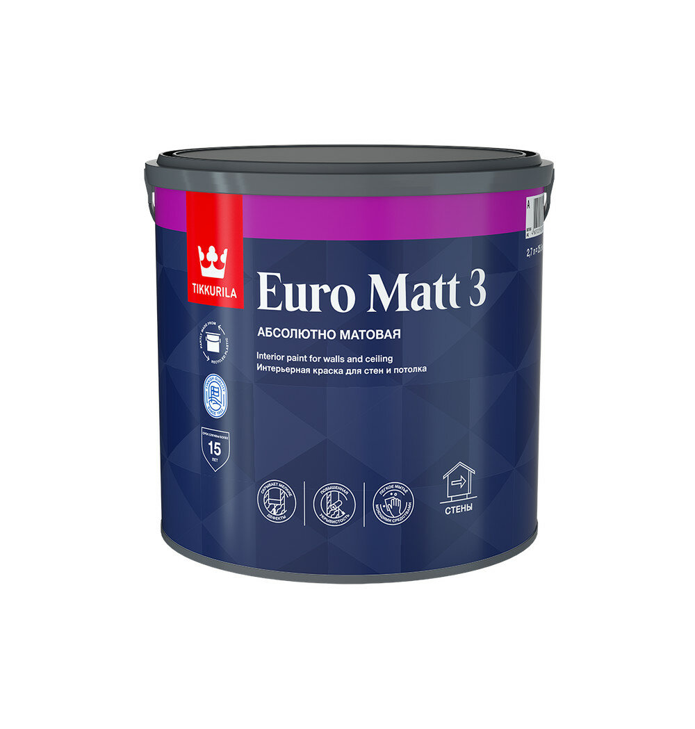 Краска интерьерная Tikkurila/Tikkivala Euro White глубокоматовая белая 2,7 л: сравнение цен, характеристики, фото, актуальное наличие и цены.