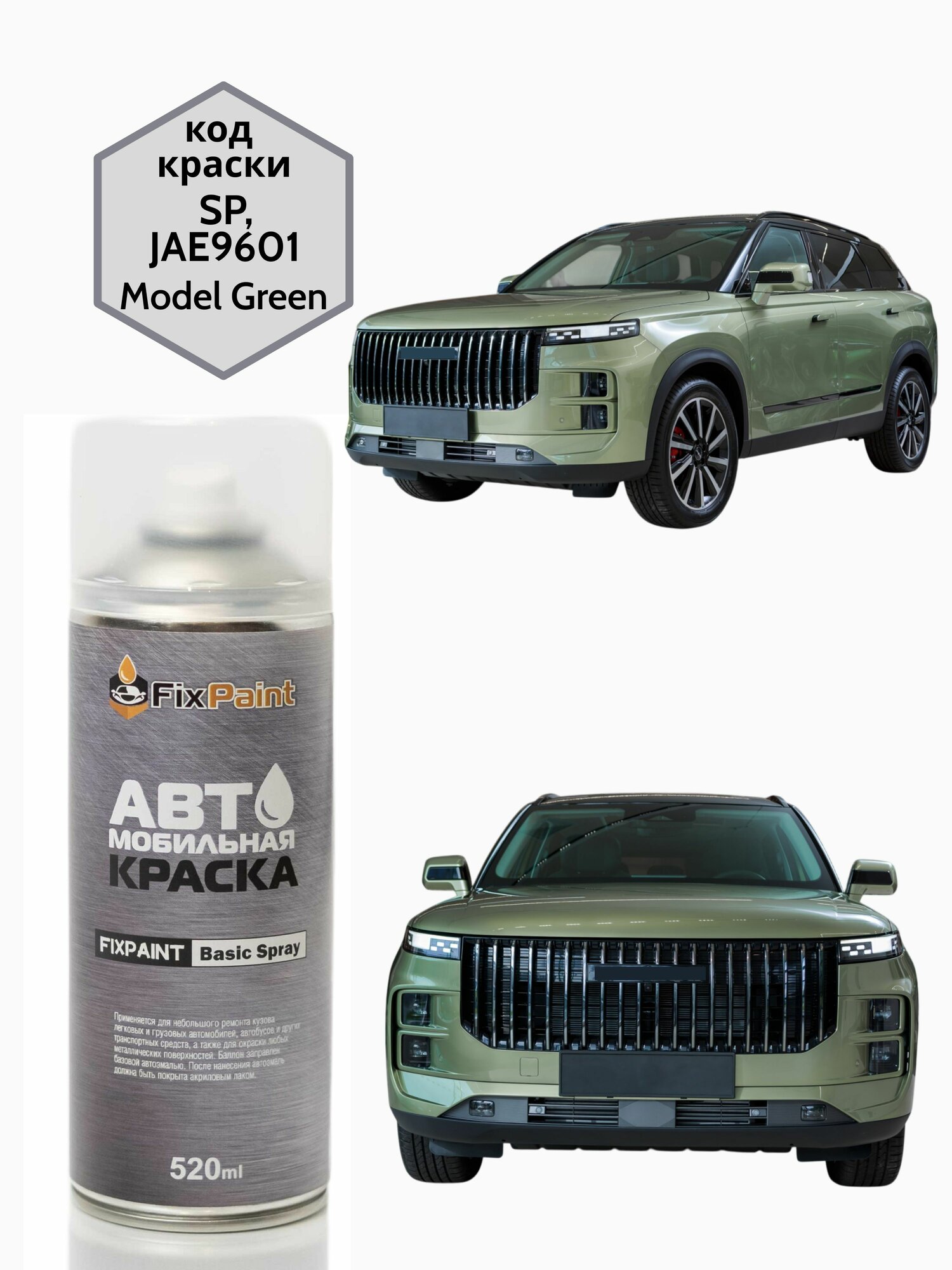Краска JAECOO J7, код SP, JAE9601, Model Green, автомобильная эмаль FixPaint Spray в аэрозольном баллончике 520 мл: сравнение цен, характеристики, фото, актуальное наличие и цены.