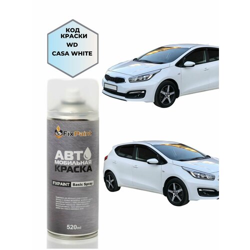 Аэрозольная краска FixPaint Spray для автомобилей KIA CEED 2 (JD), код краски WD, название цвета (оттенок) CASA WHITE солид, предназначена для ремонтной покраски металлических и пластиковых кузовных элементов автомобиля по технологии идентичной профессиональной и позволяет качественно выполнить восстановление лакокрасочного покрытия.