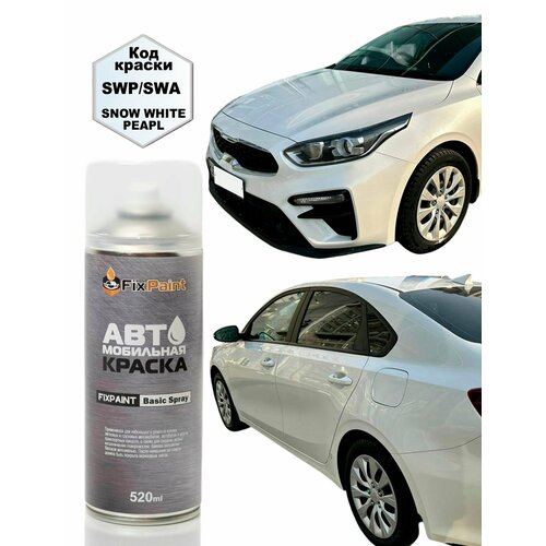 Аэрозольная краска FixPaint Spray для автомобилей KIA CERATO 4 (BD), код краски SWP, название цвета (оттенок) трехслойная базовая эмаль SNOW WHITE PEARL, предназначена для ремонтной покраски металлических и пластиковых кузовных элементов автомобиля по технологии идентичной профессиональной и позволяет качественно выполнить восстановление лакокрасочного покрытия.