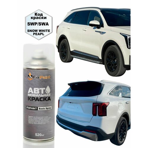 Аэрозольная краска FixPaint Spray для автомобилей KIA SORENTO 3. PRIME (UM), код краски SWP, название цвета (оттенок) трехслойная базовая эмаль SNOW WHITE PEARL Белоснежная жемчужина, предназначена для ремонтной покраски металлических и пластиковых кузовных элементов автомобиля по технологии идентичной профессиональной и позволяет качественно выполнить восстановление лакокрасочного покрытия.