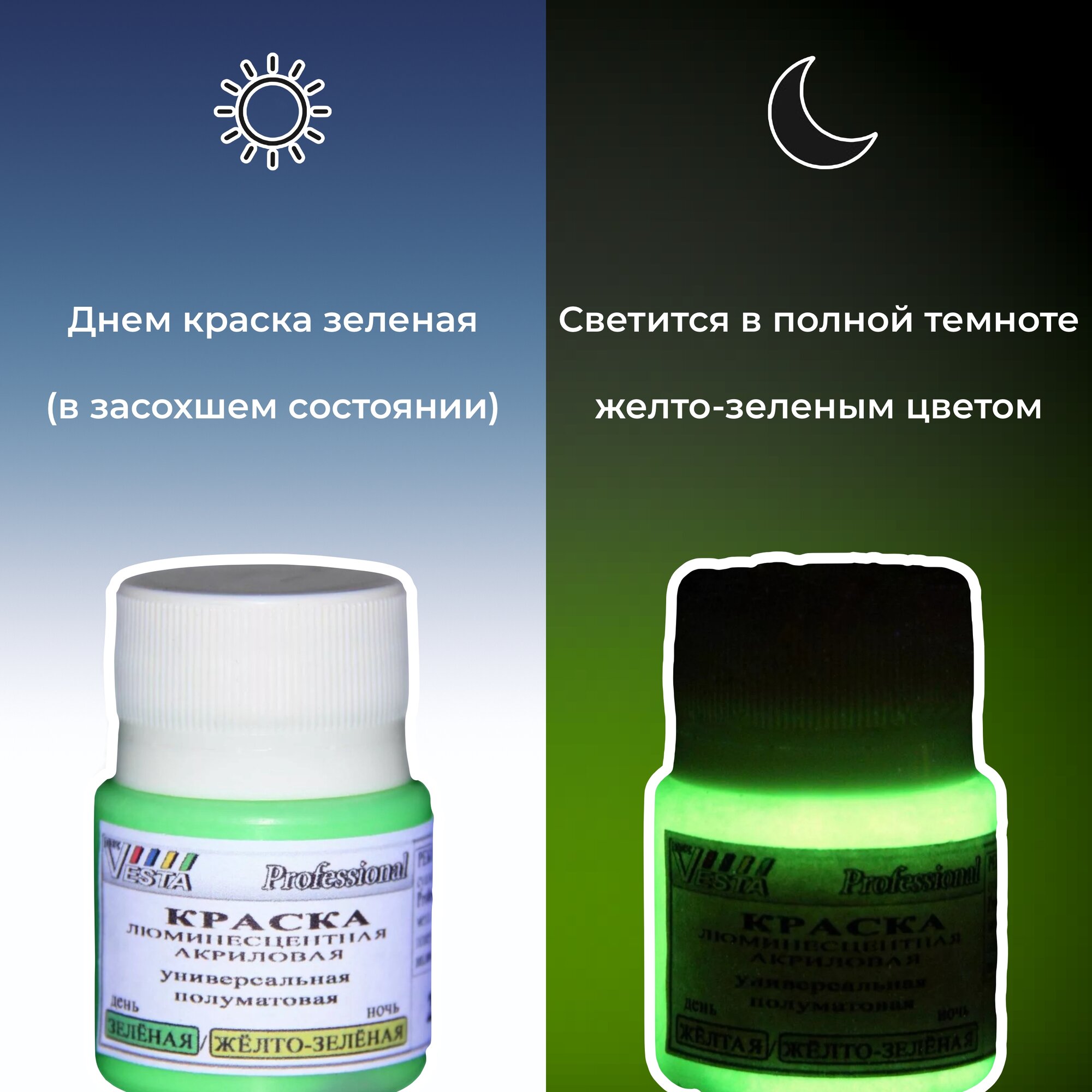 Краска люминесцентная «VESTA PROFESSIONAL» зеленая / желто-зеленая (день / ночь) — 1000 мл: сравнение цен, характеристики, фото, актуальное наличие и цены.