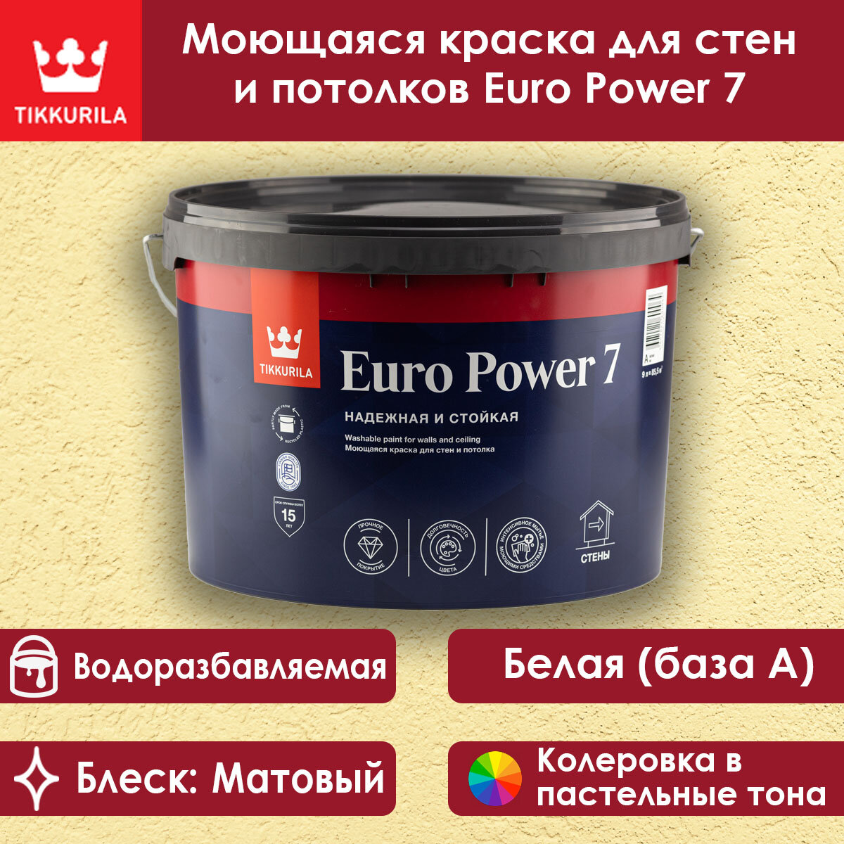 Тиккурила Евро-7 Пауэр база А белая моющаяся краска для потолков и стен (9л) / TIKKURILA Euro Power 7 base A краска моющаяся для стен и потолка (9л): сравнение цен, характеристики, фото, актуальное наличие и цены.