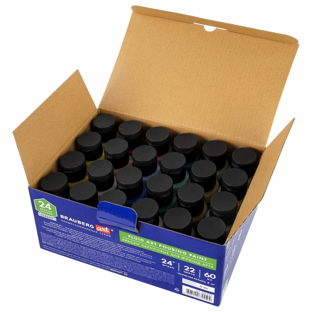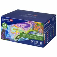 Художественные акриловые краски BRAUBERG ART CLASSIC предназначены для работы в технике "Флюид Арт" – абстрактной живописи жидким акрилом с текучей консистенцией. Профессиональная серия. Жидкие акриловые краски разработаны по особой формуле, благодаря которой цвета практически не смешиваются между собой – это позволяет добиться причудливых изгибов с контрастными переходами. Разливая краски по поверхности в различных пропорциях, получают уникальный рисунок.Краски ярких и насыщенных цветов подходят для работы на грунтованном холсте, деревянной панели, стекле и других твердых основах, устойчивых к воздействию влаги. Не требуют разбавления водой, полностью готовы к использованию. Не токсичны и не имеют неприятного резкого запаха. Обладают высокой укрывистостью и светостойкостью.Краски во флаконах объемом 60 мл с удобным дозировочным клапаном поставляются в картонной коробке.В наборе 24 штуки, 22 цвета:- ярко-красная (201);- киноварь (202);- желтая средняя (501);- лимонная желтая (502);- пастельная желтая (503);- зеленая ФЦ (401);- голубая ФЦ (301);- ультрамарин (302);- лесная зеленая (403);- морская зеленая (402);- лавандовая (601);- гвоздика розовая (602);- вишнево-розовая (603);- розовая (604);- коралловая (605);- золотистая (901);- серебристая (902);- бронзовая (903);- винно-красный металлик (904);- серебристая серая (702);- марс черный (701);- белила титановые (101) - 3 шт.Художественные краски, представленные широкой цветовой гаммой, пригодятся как канцтовары школьникам, студентам, участникам мастер-классов, ученикам художественных школ, студий и училищ, живописных мастерских. Отлично подойдут для работы дома или на пленэре. С помощью художественных акриловых красок можно создать даже иллюстрации к сонетам Шекспира. Эти краски используют любители для хобби и профессионалы, которые стремятся достичь такой же славы как Пикассо (Picasso), Малевич, Шагал, Моне (Claude Monet), Рембрандт (Rembrandt), Дали (Salvador Dali), Уорхол (Andy Warhol), Рублёв, Фрида Кало (Frida Kahlo), Ван Гог (Vincent van Gogh), Тициан ( Tician), Анри Матисс (Henri Matisse) Леонардо да Винчи (Leonardo da Vinci) и другие популярные художники и артисты. Творчество – луч света в серых буднях! Количество цветов в наборе: 22. Серия: Classic Fluid Art. Тип фасовки: флакон. Объем: 60 мл. Спецэффект цвета: глянцевый. Особенности: базовые цвета. Тип краски: акриловые художественные для Флюид Арта. Упаковка: картонная коробка Бренд - BRAUBERG. Производитель - Китай. Артикул - 192237. Штрихкод - 4606224355504