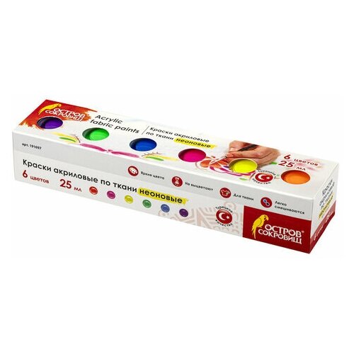 Купить Краски акриловые по ткани 6 цветов Остров сокровищ, 25мл, неон, 3 уп. (191697) с доставкой по всей России. Краски акриловые по ткани 6 цветов Остров сокровищ, 25мл, неон, 3 уп. (191697): сравнение цен, характеристики, фото, актуальное наличие и цены.