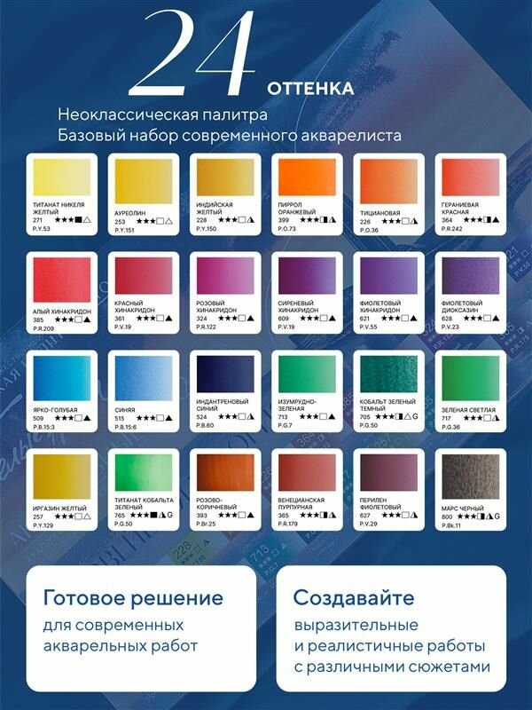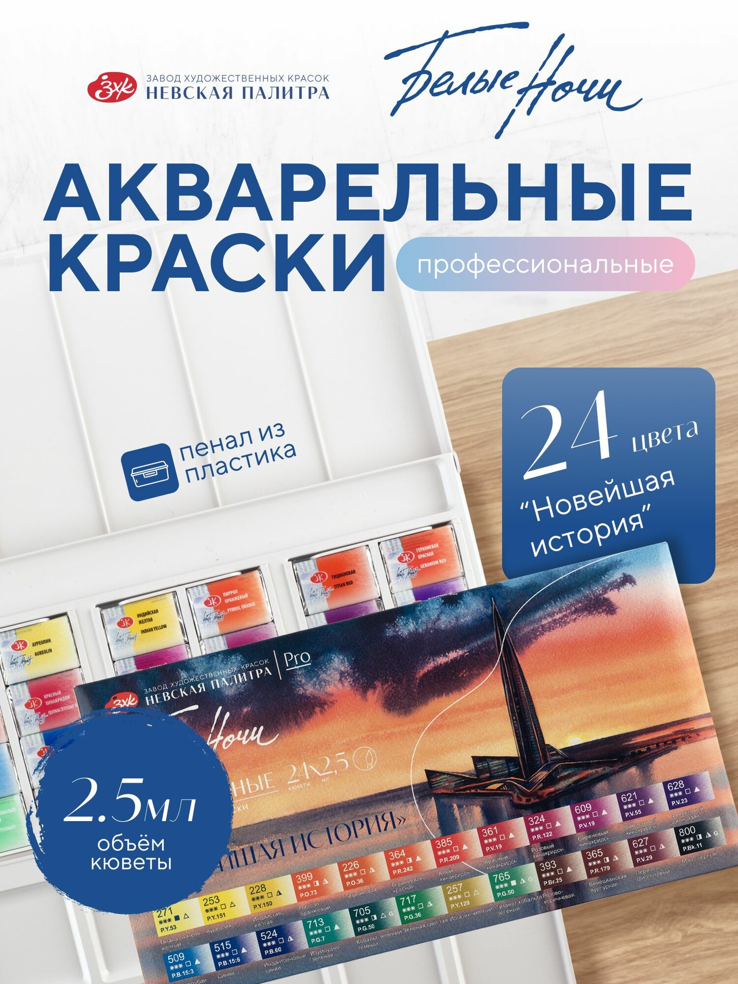 Купить Акварельные краски для рисования набор 24 цвета Белые ночи акварель художественная серия «Новейшая история» с доставкой по всей России.