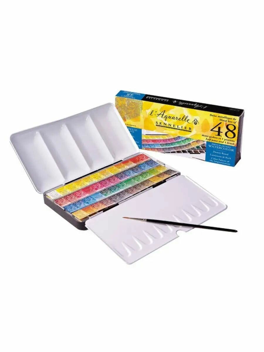 N131607 Набор акварели "Artists" в полукюветах, 48 цветов, 1 кисть, металл.