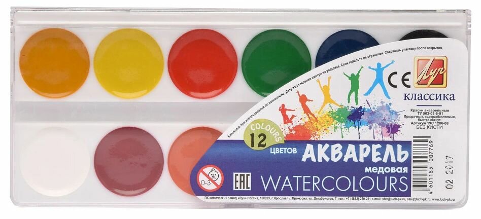Краски акварельные медовые 12 цветов Луч «Классика», без кисти, пластиковая коробка (19С 1286-08), 48 уп.: сравнение цен, характеристики, фото, актуальное наличие и цены.