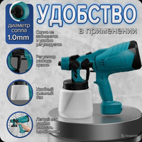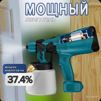 Купить Краскопульт, аккумуляторный краскопульт, краскопульт для покраски автомобиля, стен, потолков, универсальный, 1000 мл, 18v, синий с доставкой по всей России.