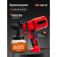 Купить Краскопульт электрический сетевой пневматический Weite, 400 Вт, бачок 800 мл, все типы краски с доставкой по всей России.