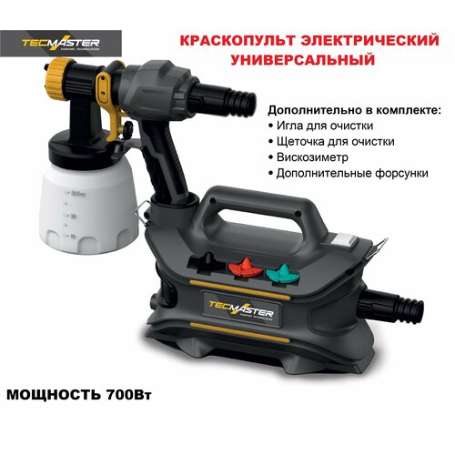 Краскопульт электрический TECMASTER 1000-1 с комплектом аксессуаров(1231000) с латунными форсунками для покраски стен, потолков: сравнение цен, характеристики, фото, актуальное наличие и цены.