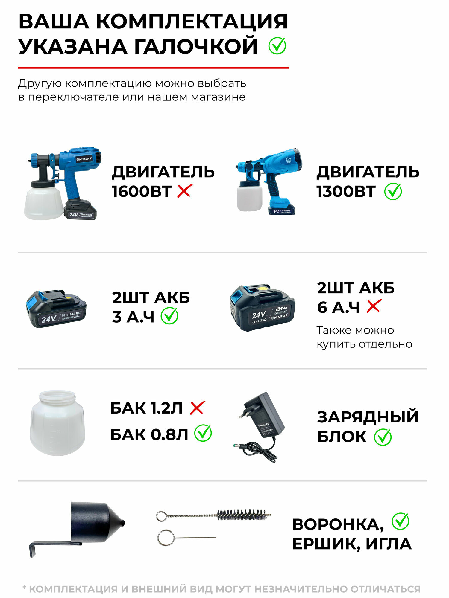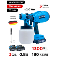 Краскопульт HIMERS DKR1300B аккумуляторный 24V, 2 АКБ по 3 А. ч, 1300вт, 800 мл, 180 л/мин: сравнение цен, характеристики, фото, актуальное наличие и цены.