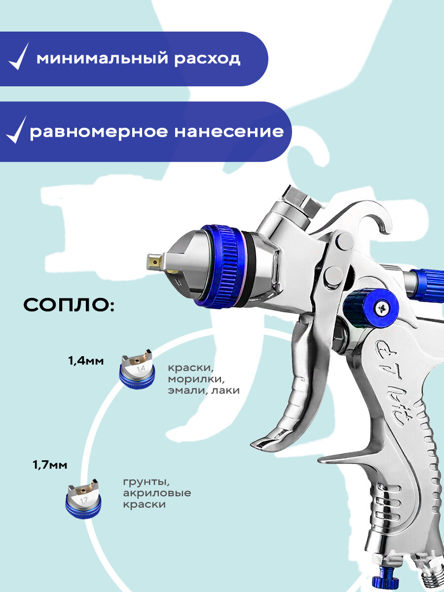 | Дополнительная информация | регулировка угла распыления, регулировка подачи воздуха |
