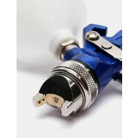 Особенностью краскопульта является его верхнее расположение бачка объемом 0.6 литра. Это позволяет удобно наносить краску, избегая ее разбрызгивания. Максимальное давление воздуха составляет 3.0 бар, а диаметр воздушного штуцера - 1/4 дюйма.