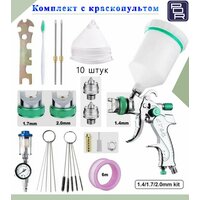 Краскопульт пневматический, полный комплект с манометром и 3-мя дозами: 1.4 мм, 1.7мм, 2.0мм: сравнение цен, характеристики, фото, актуальное наличие и цены.