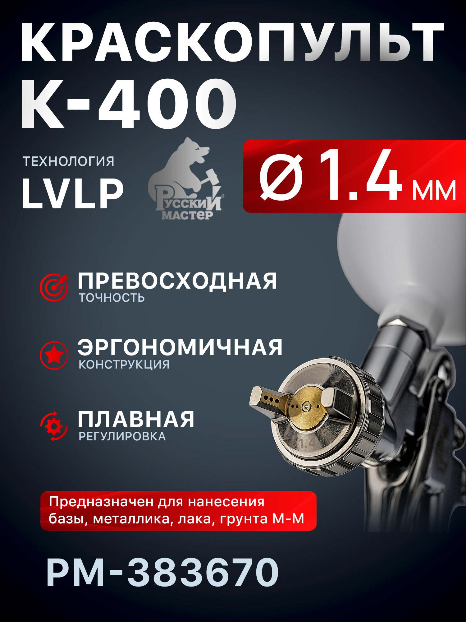 Краскопульт Русский Мастер K-400 (1.4мм) LVLP с верхним бачком 600мл (арт. РМ-383670): сравнение цен, характеристики, фото, актуальное наличие и цены.
