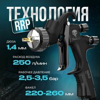 Купить Краскораспылитель RRP GOLD d1.4мм черный верхний бачок 600мл SKULL с доставкой по всей России.