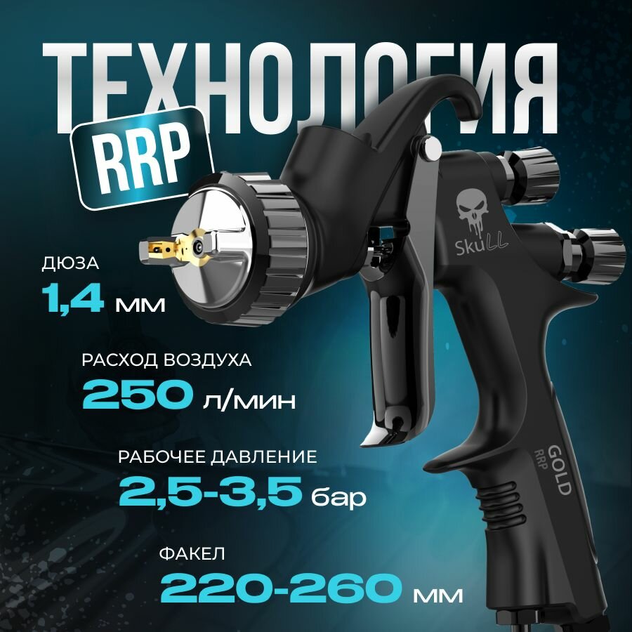 Краскораспылитель RRP GOLD d1.4мм черный верхний бачок 600мл SKULL: сравнение цен, характеристики, фото, актуальное наличие и цены.