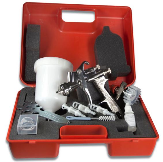 - принадлежности: ключ универсальный, ёршик для чистки краскопульта, 3 фильтра для очистки ЛКМ, специальное масло ёмкостью 15 мл для смазки трущихся частей и механизмов краскораспылителя, не соприкасающихся при работе с ЛКМ.