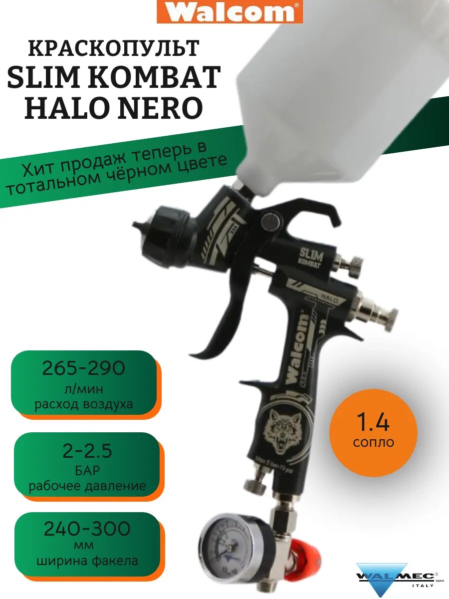 Купить Краскопульт Walcom Slim Kombat S HALO/HTE NERO с диаметром сопла 1,4 с доставкой по всей России. Краскопульт Walcom Slim Kombat S HALO/HTE NERO с диаметром сопла 1,4: сравнение цен, характеристики, фото, актуальное наличие и цены.