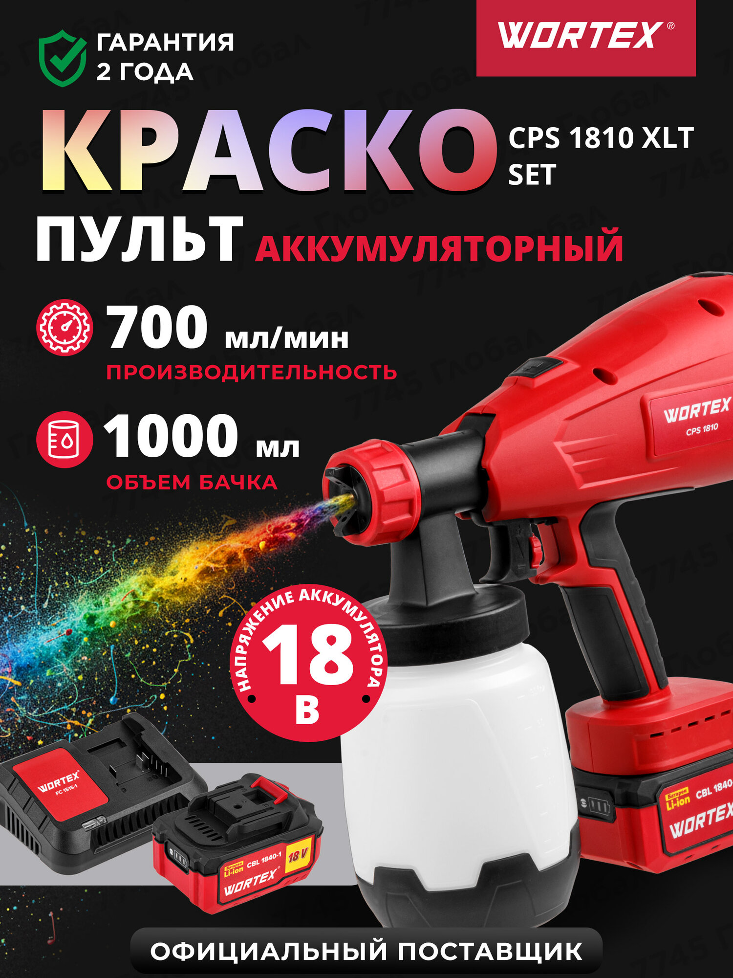 | Комплектация | Краскораспылитель аккумуляторный WORTEX CPS 1810; Стакан для проверки вязкости; Сопло; Паспорт; Аккумуляторная батарея 18В 4Ач; Зарядное устройство 2Ач |