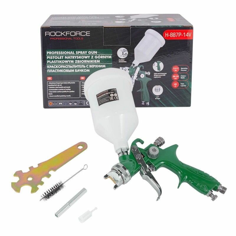 Купить Краскораспылитель c бачком 400 мл ROCKFORCE с доставкой по всей России. Краскораспылитель c бачком 400 мл ROCKFORCE: сравнение цен, характеристики, фото, актуальное наличие и цены.