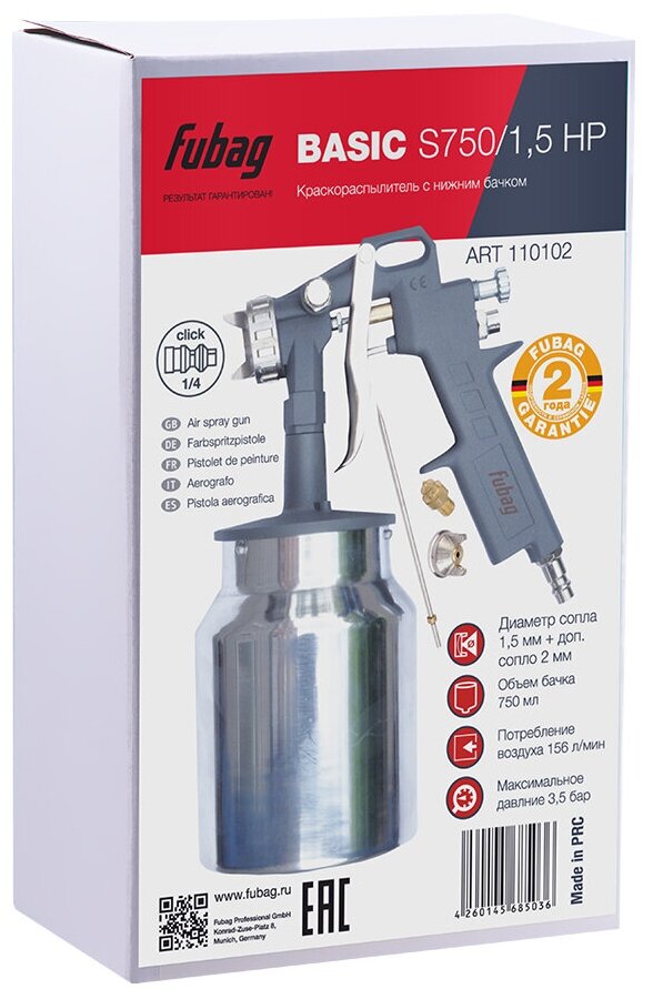 Купить Краскораспылитель FUBAG BASIC S750/1.5 HP, 156 л/мин, 3.5 бар, нижний бачок 1.0 л, 1.5, 2.0 мм арт. 110102 с доставкой по всей России. Краскораспылитель FUBAG BASIC S750/1.5 HP, 156 л/мин, 3.5 бар, нижний бачок 1.0 л, 1.5, 2.0 мм арт. 110102: сравнение цен, характеристики, фото, актуальное наличие и цены.