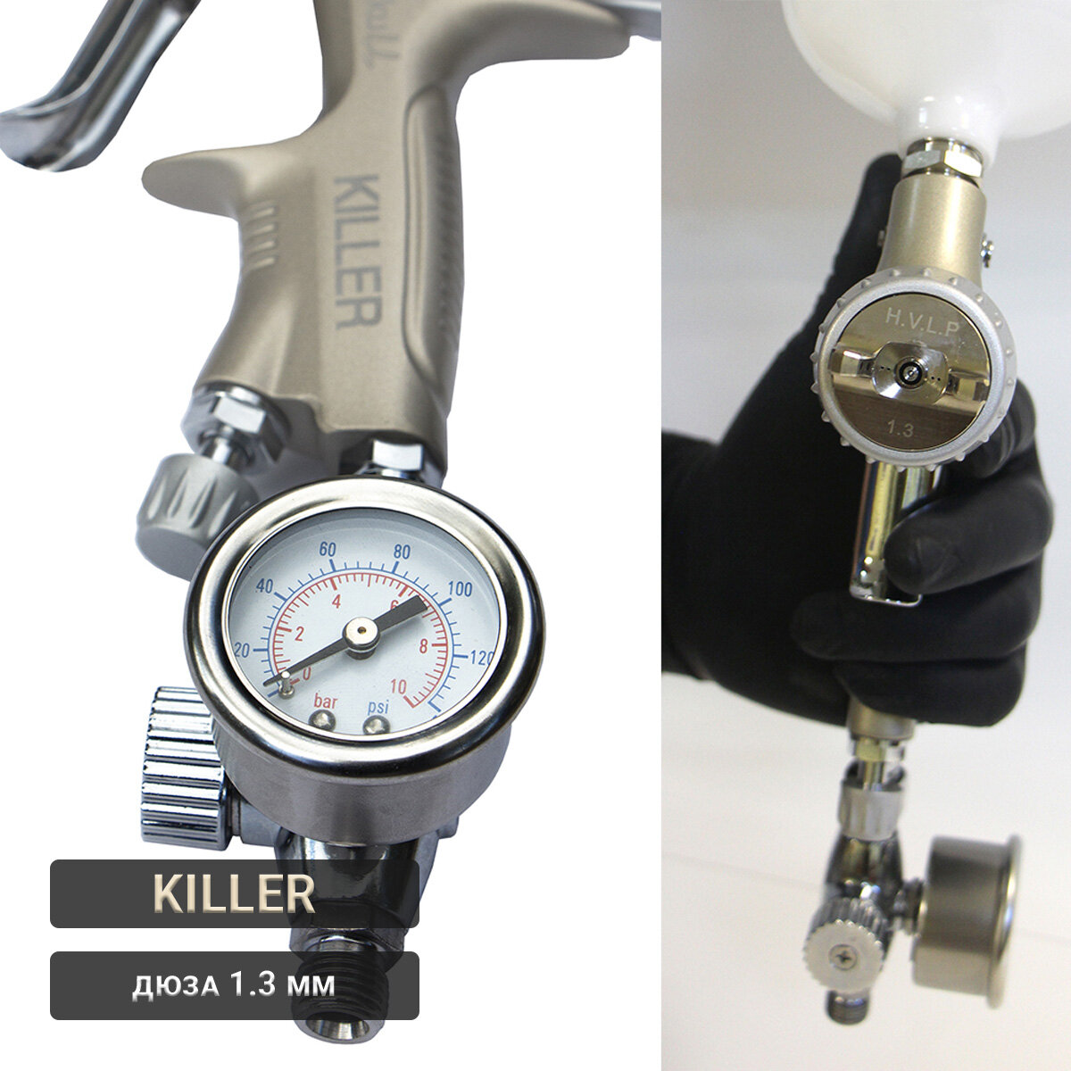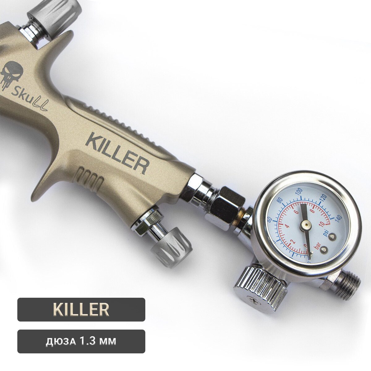 Краскораспылитель HVLP KILLER d1.3мм розовое золото с манометром верхний бачок 600мл SKULL (в кейсе): сравнение цен, характеристики, фото, актуальное наличие и цены.