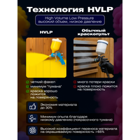 - Экономичность: технология HVLP снижает расход материала и уменьшает загрязнение окружающей среды.
