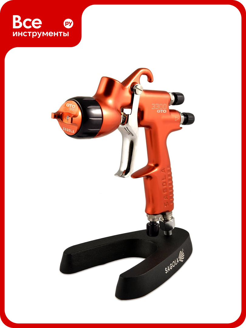 Усовершенствованный Sagola 3300 GTO new с новым воздушным клапаном разработан специально для использования в небольших мастерских с ограниченным ресурсом по воздуху; сконструирован по принципу "универсального корпуса". Это значит, что используя различные воздушные головы, можно наносить разные материалы. Sagola 3300 GTO с головой TECH рекомендуется для нанесения базовых покрытий и лака. Рекомендации по выбору дюзы: 1.20 - лаки, базовые слои на водной основе 1.30 - HS и MS покрытия 1.40 - HS/MS покрытия и одноступенчатые краски. Высокая скорость.