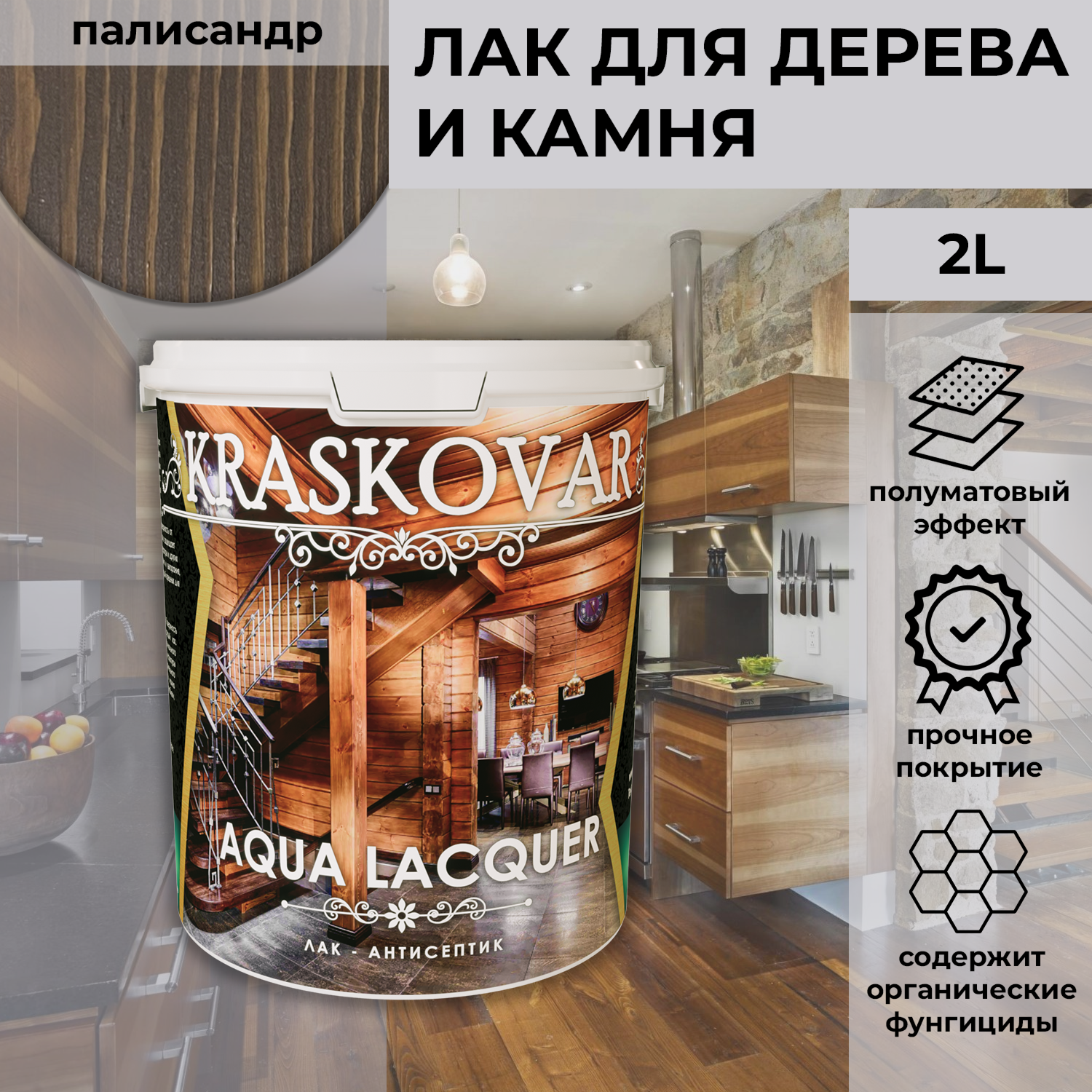 Kraskovar Лак-антисептик полуматовый Aqua Lacquer для дерева и камня, палисандр 2л: сравнение цен, характеристики, фото, актуальное наличие и цены.