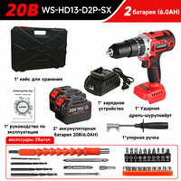 Красная аккумуляторная ударная дрель, бесщеточная, 20 В, 13 мм, 2 аккумулятор 6,0 А·ч,Пластиковый ящик