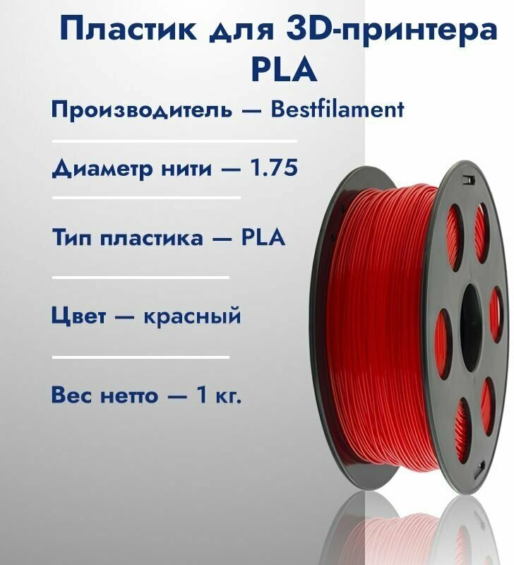 Красный PLA пластик Bestfilament для 3D-принтеров 1 кг (1,75 мм): сравнение цен, характеристики, фото, актуальное наличие и цены.