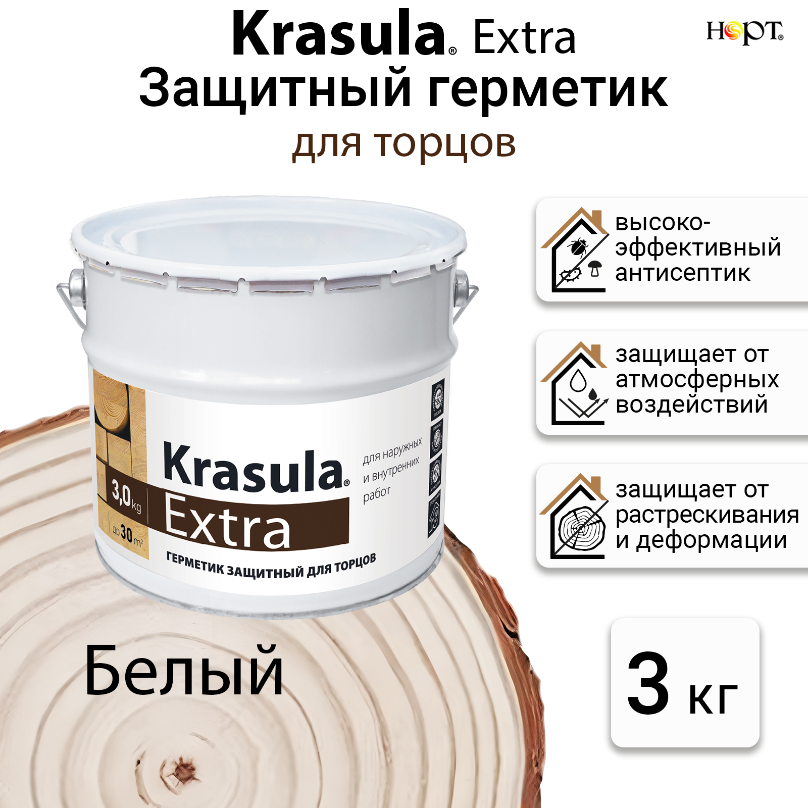 Купить Krasula Extra 3кг, Герметик защитный для торцов, пропитка для торцов, Белый с доставкой по всей России.